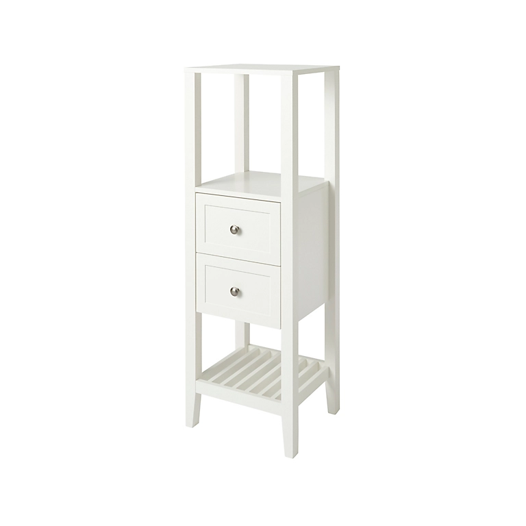 - Étagère ouverte pour les éléments que vous souhaitez voir et garder à portée de main (idéale pour y placer des serviettes ou des boîtes de rangement pour flacons)