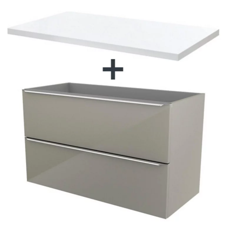Meuble sous vasque à suspendre GoodHome Imandra taupe 100 cm + plan de toilette Marloes