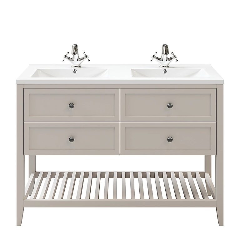 Meuble sous vasque à poser 4 tiroirs GoodHome Perma taupe 120 cm + plan double vasque Nira