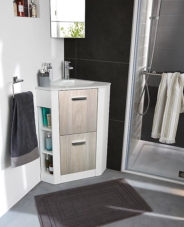 Meuble sous vasque en angle Cooke & Lewis Waneta aspect bois 46 cm + plan vasque en céramique