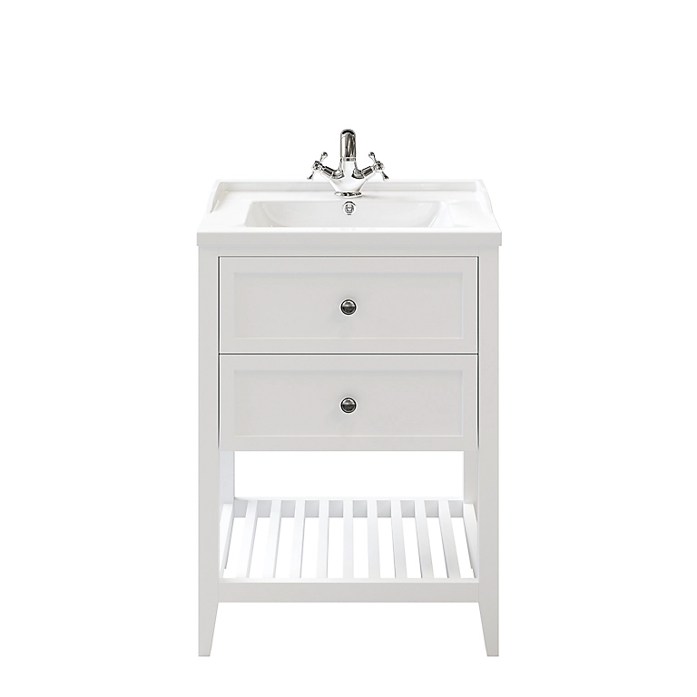 Meuble sous vasque à poser 2 tiroirs GoodHome Perma blanc 60 cm + plan vasque Lana