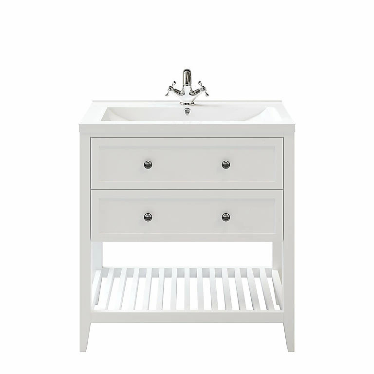 Meuble sous vasque à poser 2 tiroirs GoodHome Perma blanc 80 cm + plan vasque Nira