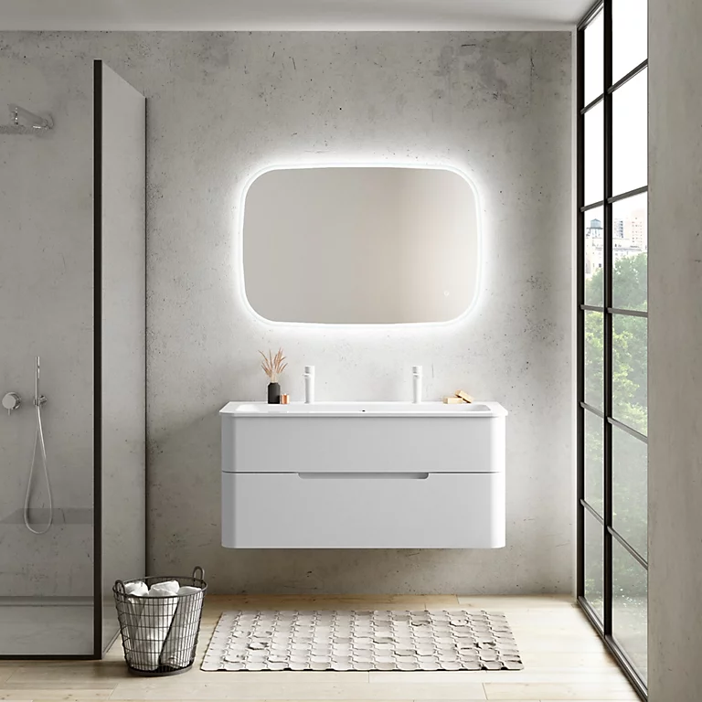 Ensemble salle de bains L. 119 cm meuble sous vasque blanc mat + plan vasque blanc mat Alba