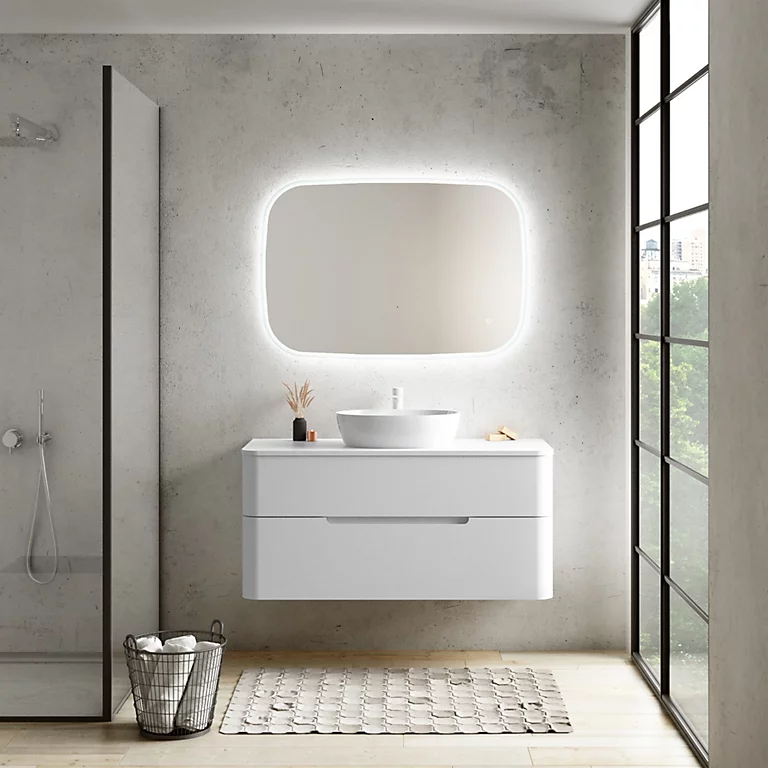 Ensemble salle de bains L. 119 cm meuble sous vasque + plan de toilette blanc mat Alba