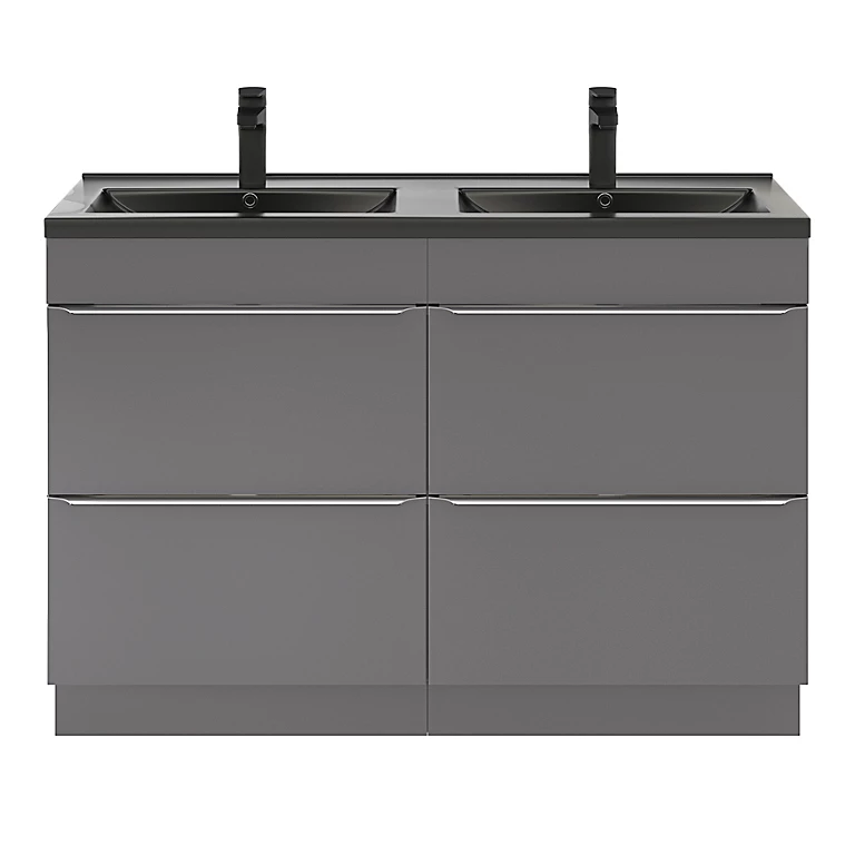 Ensemble salle de bains L.120 cm meuble à poser Imandra gris brillant + plan double vasque céramique noir