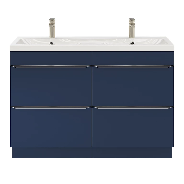 Ensemble salle de bains L.120 cm meuble à suspendre Imandra bleu nuit mat + plan vasque résine blanc