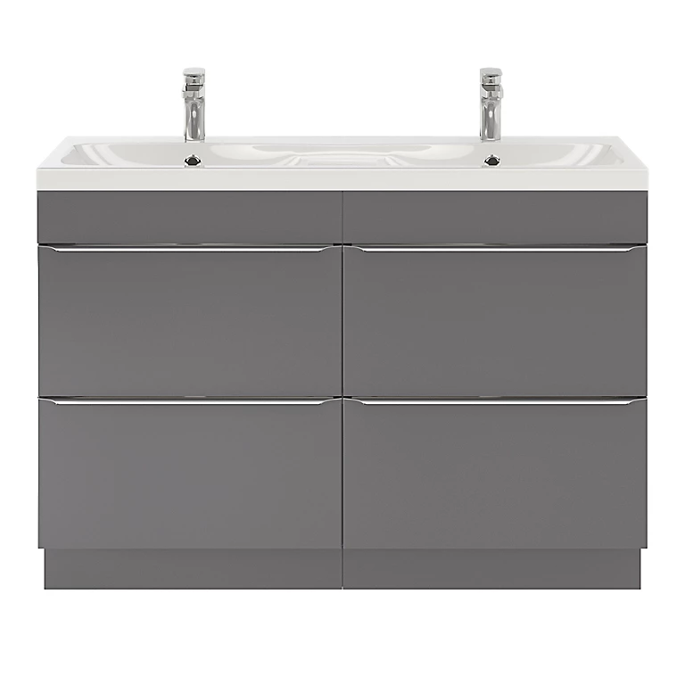 Ensemble salle de bains L.120 cm meuble à suspendre Imandra gris brillant + plan vasque résine blanc