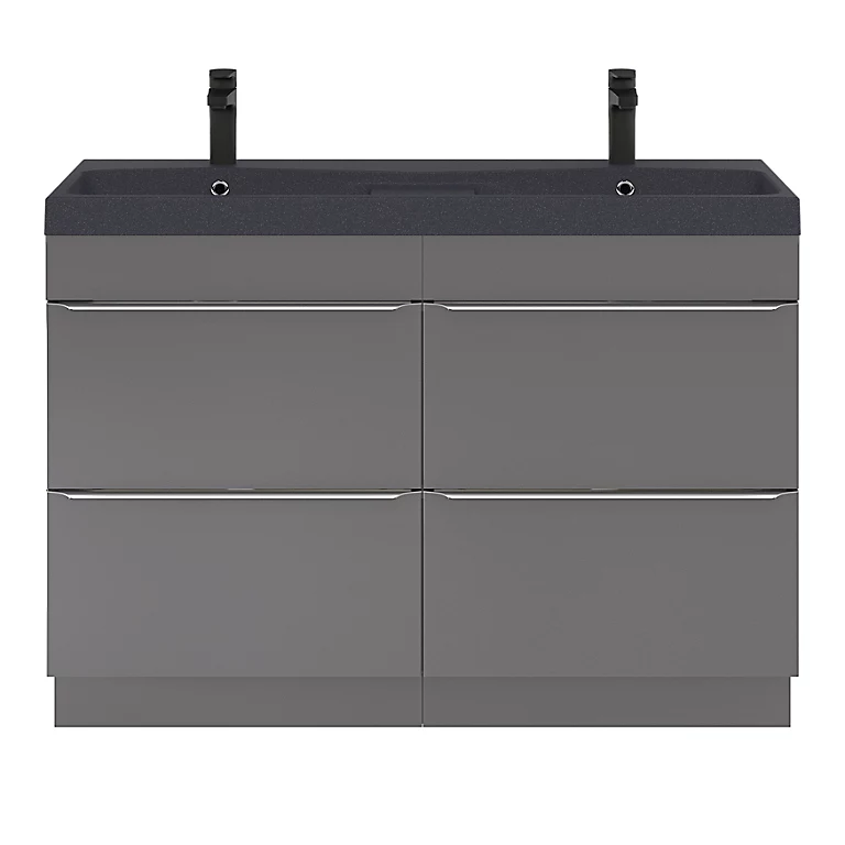 Ensemble salle de bains L.120 cm meuble à suspendre Imandra gris brillant + plan vasque résine noir