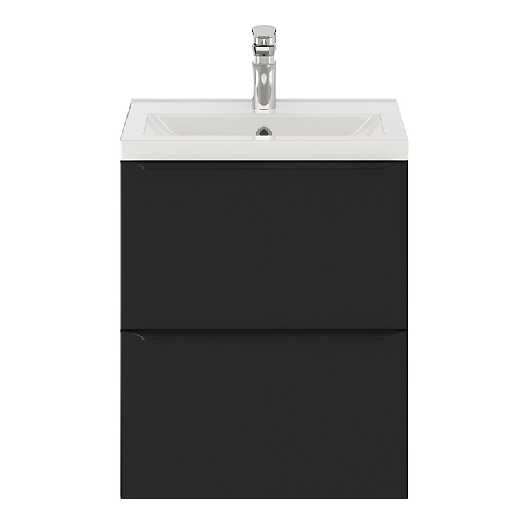 Ensemble salle de bains L.50 cm meuble à suspendre faible profondeur Imandra noir mat + plan vasque porcelaine blanc