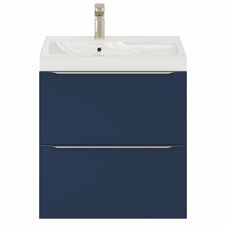 Ensemble salle de bains L.60 cm meuble à suspendre Imandra bleu nuit mat + plan vasque résine blanc