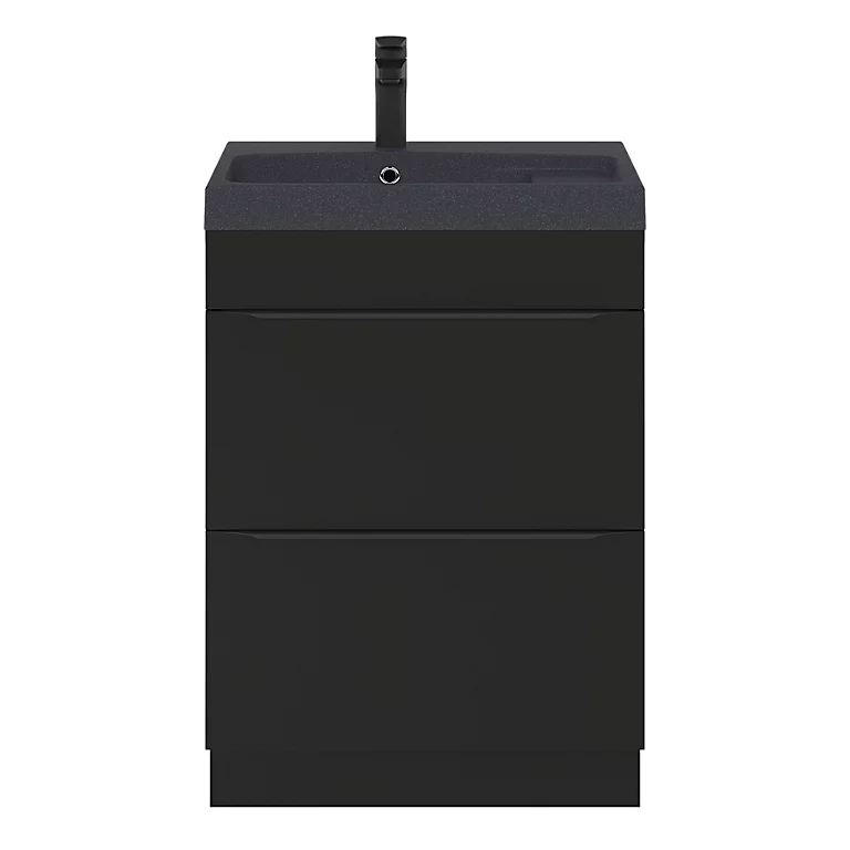 Ensemble salle de bains L.60 cm meuble à suspendre Imandra noir mat + plan vasque résine noir