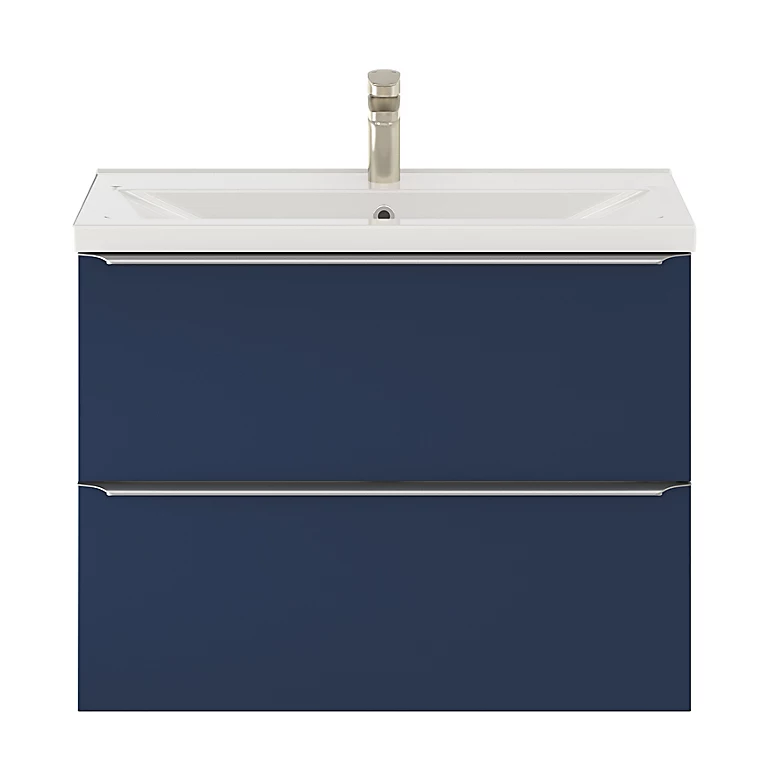 Ensemble salle de bains L.80 cm meuble à suspendre faible profondeur Imandra bleu nuit mat + plan vasque porcelaine blanc