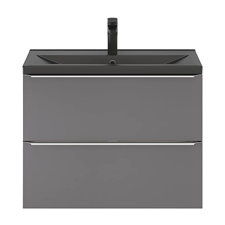 Ensemble salle de bains L.80 cm meuble à suspendre faible profondeur Imandra gris brillant + plan vasque céramique noir
