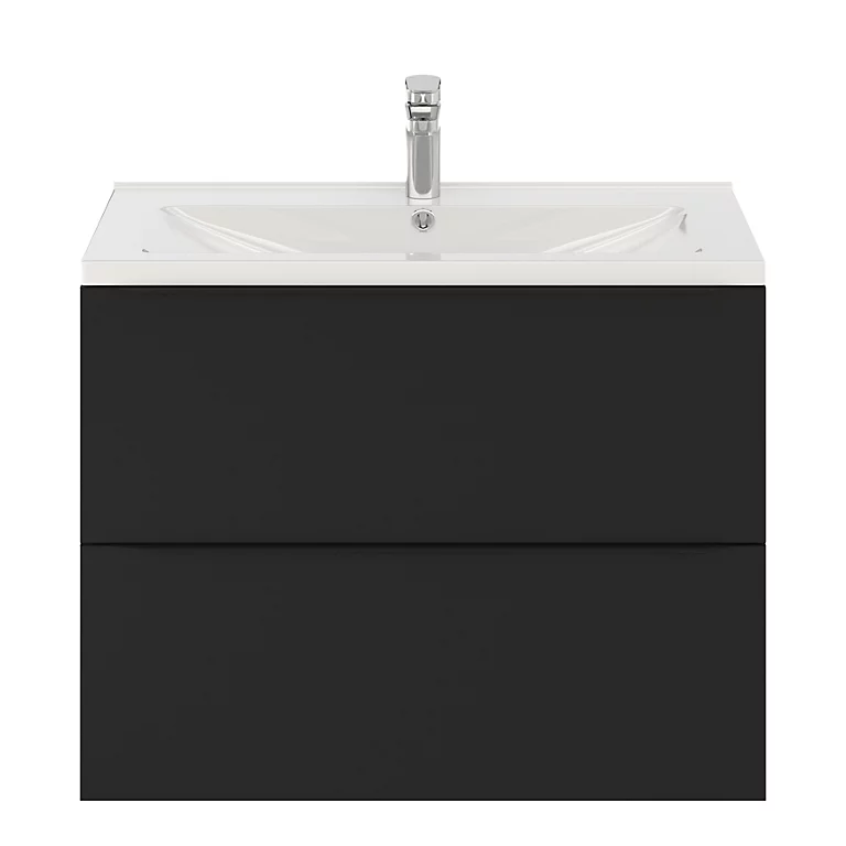 Ensemble salle de bains L.80 cm meuble à suspendre faible profondeur Imandra noir mat + plan vasque Nira céramique blanc