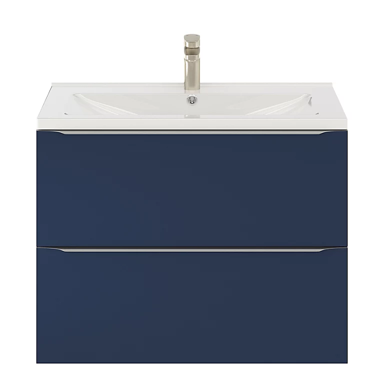 Ensemble salle de bains L.80 cm meuble à suspendre Imandra bleu nuit mat + plan vasque céramique blanc