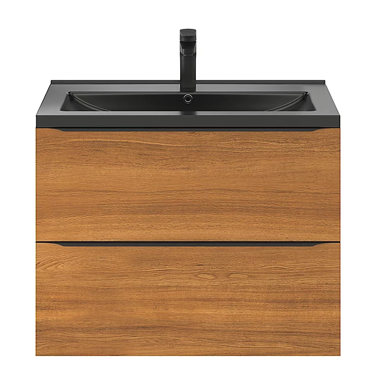 Ensemble salle de bains L.80 cm meuble à suspendre Imandra décor noyer + plan vasque céramique noir