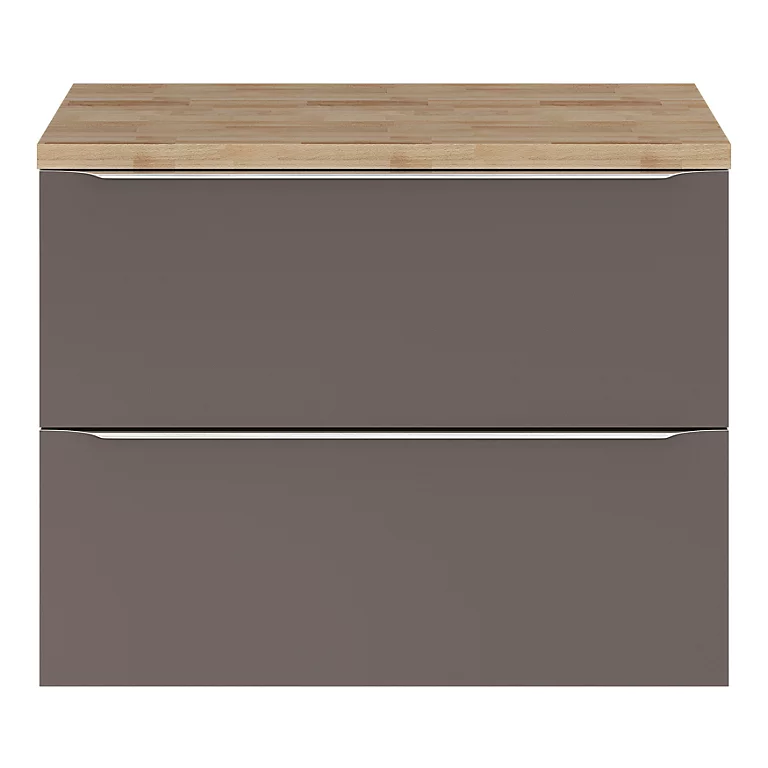 Ensemble salle de bains L.80 cm meuble à suspendre Imandra gris taupe brillant + plan de toilette décor chêne