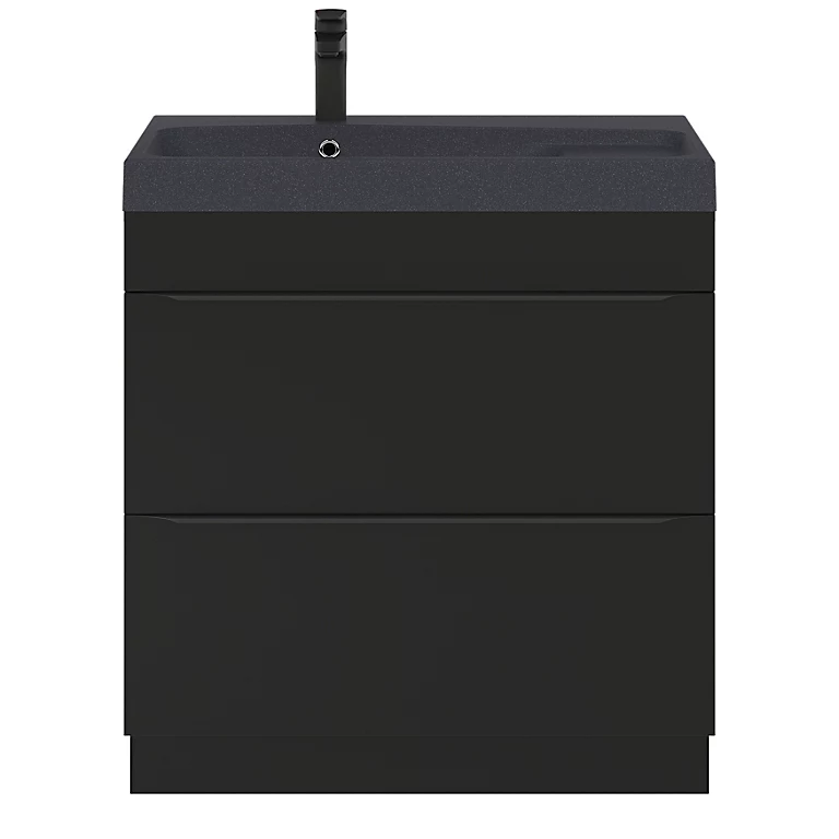 Ensemble salle de bains L.80 cm meuble à suspendre Imandra noir mat + plan vasque résine noir