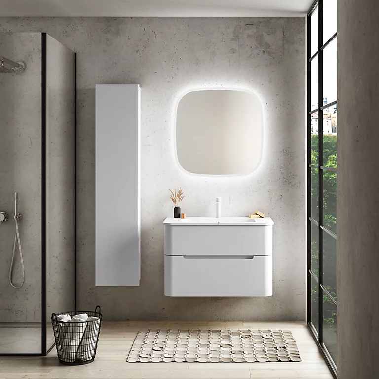 Ensemble salle de bains L. 84 cm meuble sous vasque blanc mat + plan vasque blanc mat Alba