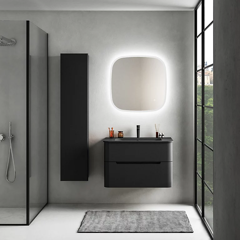Ensemble salle de bains L. 84 cm meuble sous vasque noir mat + plan vasque noir mat Alba