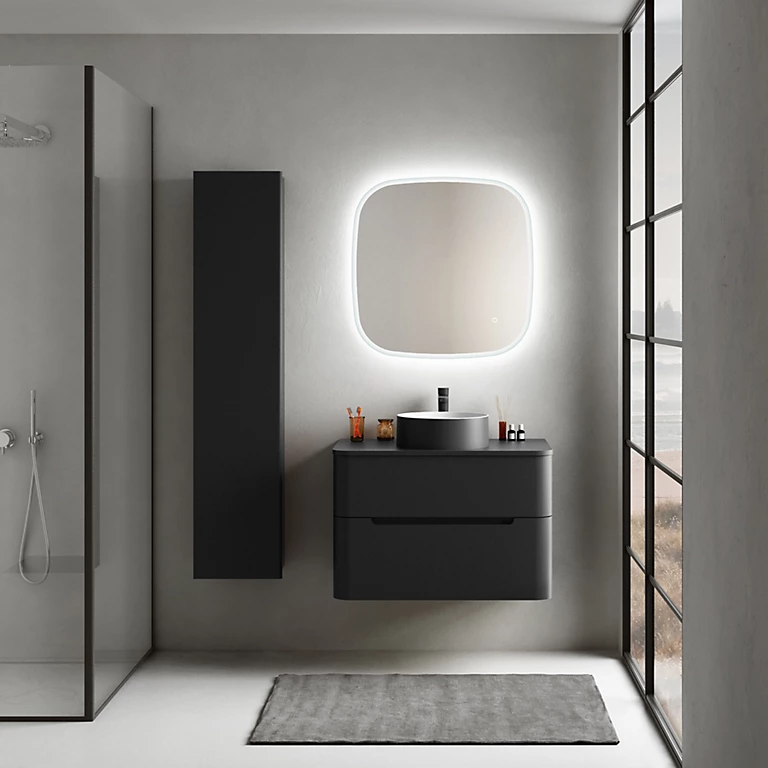 Ensemble salle de bains L. 84 cm meuble sous vasque + plan de toilette noir mat Alba