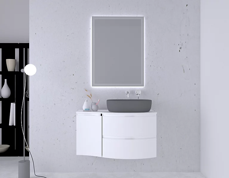 Ensemble Vague L.104 cm meuble sous vasque à suspendre blanc brillant + plan de toilette + complément gauche