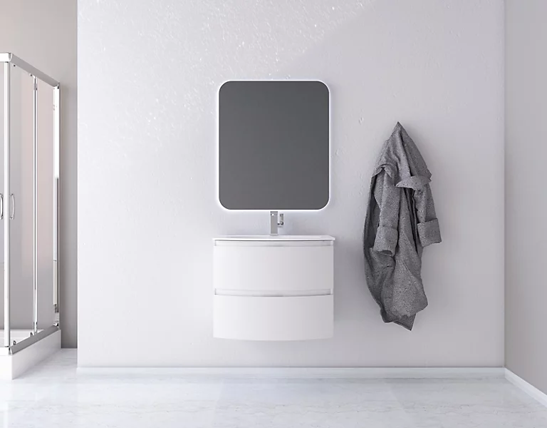 Ensemble Vague L.70 cm meuble sous vasque blanc mat à suspendre + plan vasque résine blanc