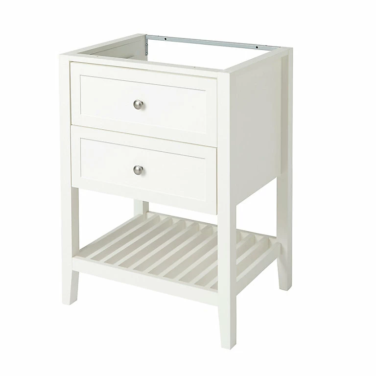 - Étagère ouverte pour les éléments que vous souhaitez voir et garder à portée de main (idéale pour y placer des serviettes ou des boîtes de rangement pour flacons)