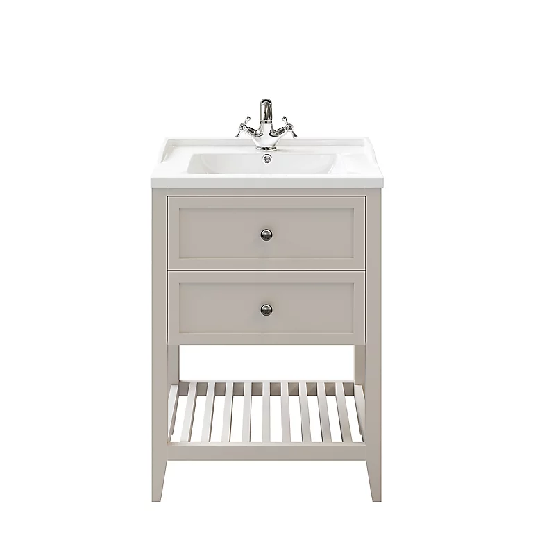 Meuble sous vasque à poser 2 tiroirs GoodHome Perma taupe 60 cm + plan vasque Lana