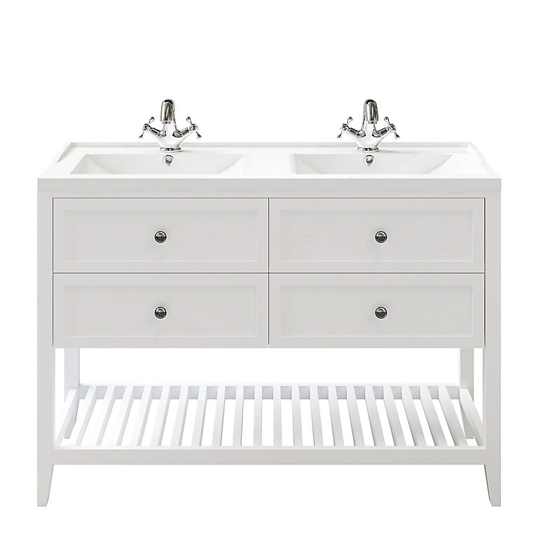 Meuble sous vasque à poser 4 tiroirs GoodHome Perma blanc 120 cm + plan double vasque Lana