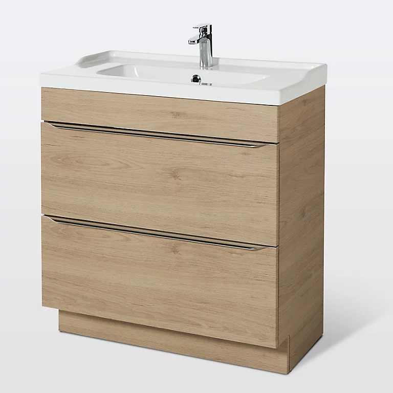 Meuble sous vasque à poser GoodHome Imandra bois chêne 80 cm + plan vasque Lana