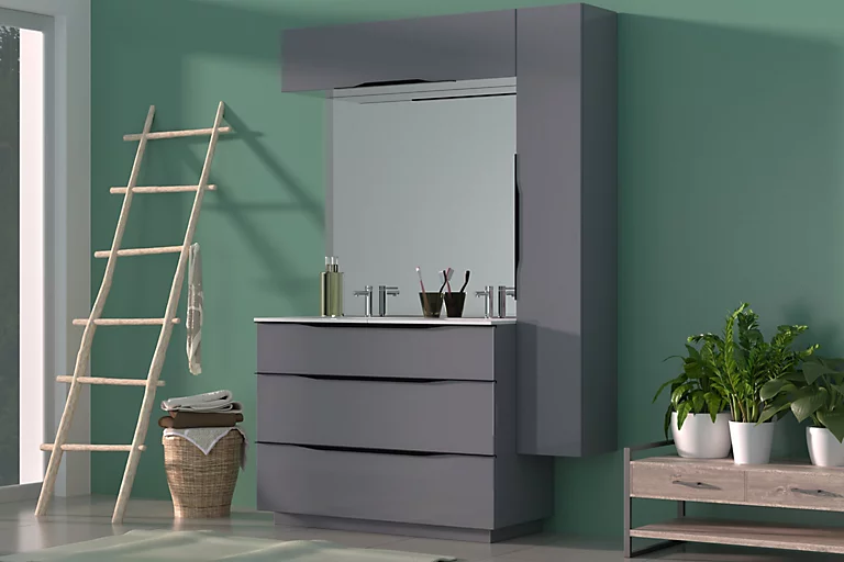 Meuble sous vasque à poser Pamili gris anthracite brillant 120 cm + plan double vasque en résine blanc