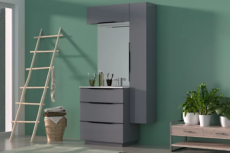Meuble sous vasque à poser Pamili gris anthracite brillant 80 cm + plan vasque en résine blanc