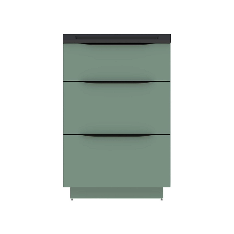 Meuble sous vasque à poser Pamili vert sauge mat 60 cm + plan vasque en résine noir