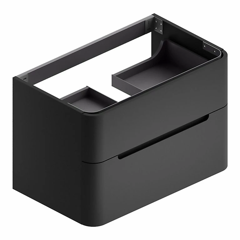 Meuble sous vasque design coloris noir adapté pour une vasque centrale. Deux larges tiroirs à ouverture totale et freins de fermeture assurent un grand espace de rangement.