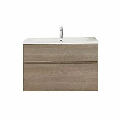 Meuble sous vasque à suspendre Calao aspect chêne clair 90 cm + plan vasque en céramique blanche