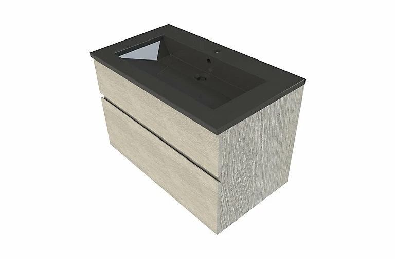 Meuble sous vasque à suspendre Calao aspect chêne clair 90 cm + plan vasque en résine noir