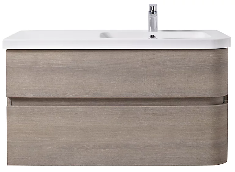 Meuble sous vasque à suspendre Cooke & Lewis Voluto bois grisé version droite 105 cm + plan vasque en résine