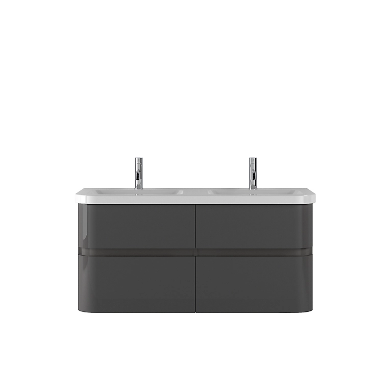 Meuble sous vasque à suspendre Cooke & Lewis Voluto gris anthracite 4 tiroirs 120 cm + plan double vasque en résine