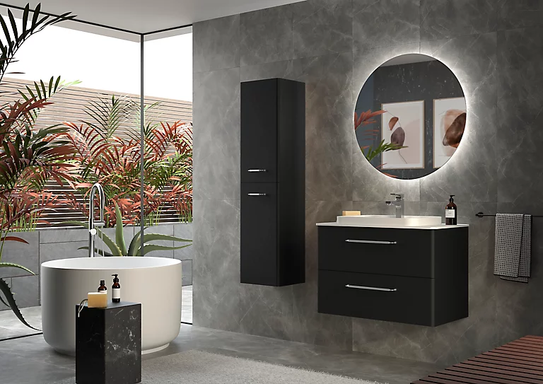 Meuble sous vasque à suspendre Cygnus bath Teha L. 80 cm noir mat + plan vasque semi-encastré résine blanc