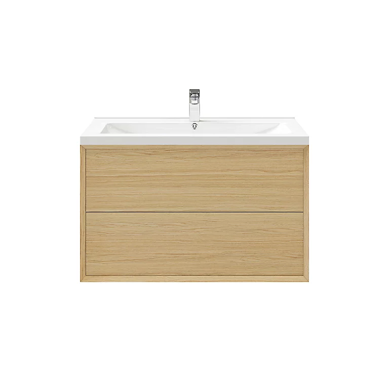 Meuble sous vasque à suspendre GoodHome Avela placage chêne 100 cm + plan vasque Nira