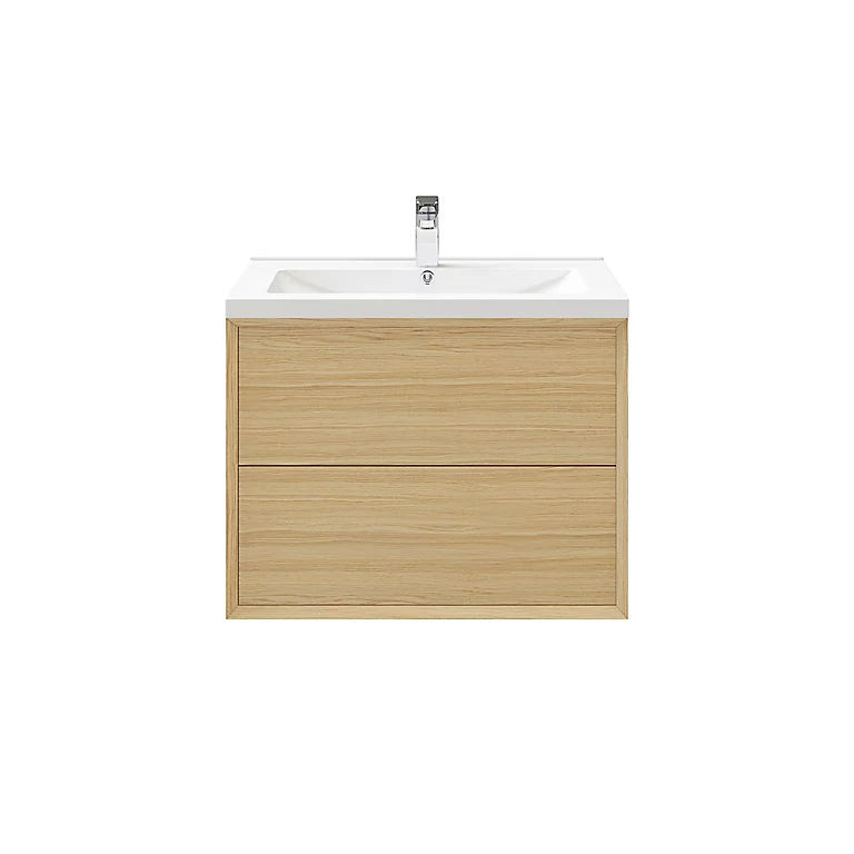 Meuble sous vasque à suspendre GoodHome Avela placage chêne 80 cm + plan vasque Nira