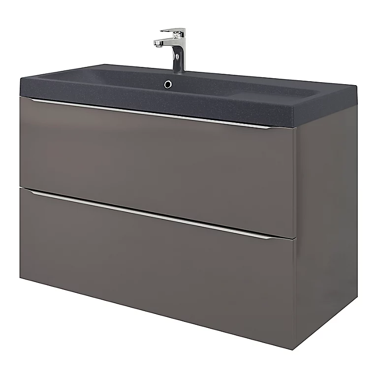 Meuble sous vasque à suspendre GoodHome Imandra gris 100 cm + Plan vasque noir GoodHome Mila 100 cm