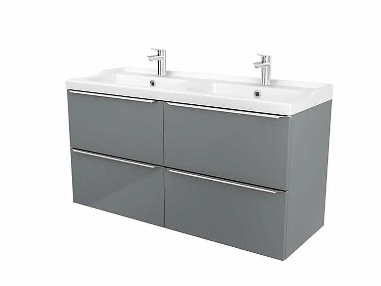 Meuble sous vasque à suspendre GoodHome Imandra gris 120 cm + plan vasque Nira