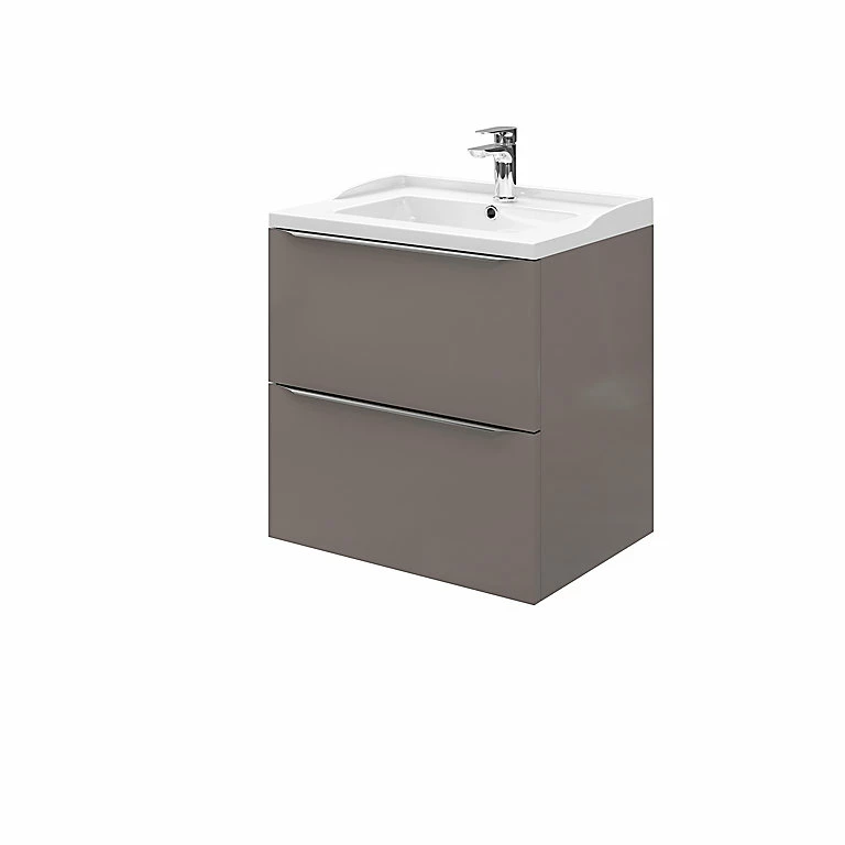 Meuble sous vasque à suspendre GoodHome Imandra gris taupé 60 cm + plan vasque Lana