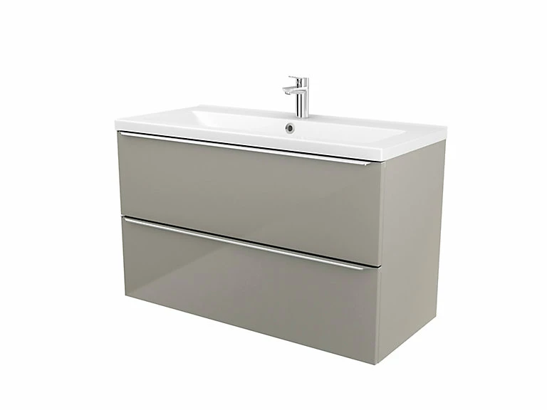 Meuble sous vasque à suspendre GoodHome Imandra taupe 100 cm + plan vasque Mila