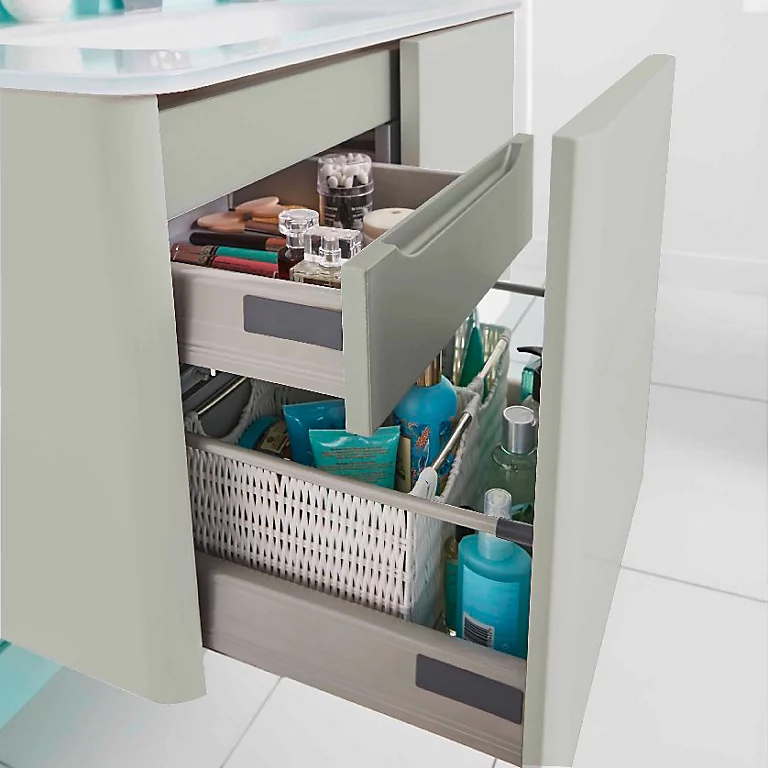 Rénovez votre salle de bain avec ce meuble sous-vasque à suspendre gris clair Cooke & Lewis, équipé de 2 tiroirs coulissants, 2 tiroirs à l’anglaise avec une épaisseurs de 19mm.