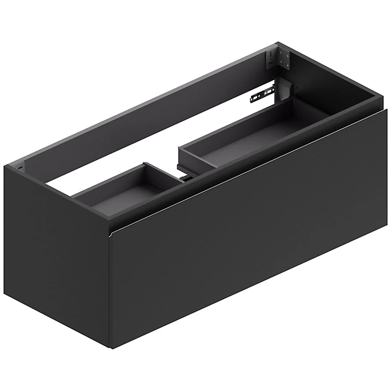 - Meuble sous-vasque 1 tiroir + 1 tiroir à l’anglaise Pura L. 120 x P. 51 x H. 46,5 cm noir mat