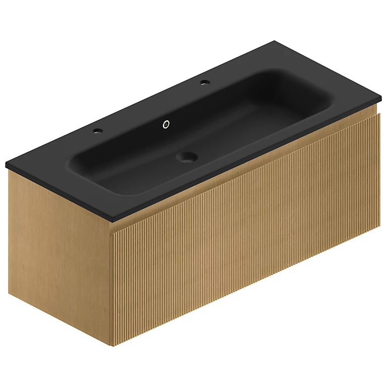 Meuble sous vasque à suspendre Pura placage chêne clair strié 120 cm + Plan vasque en résine noir mat