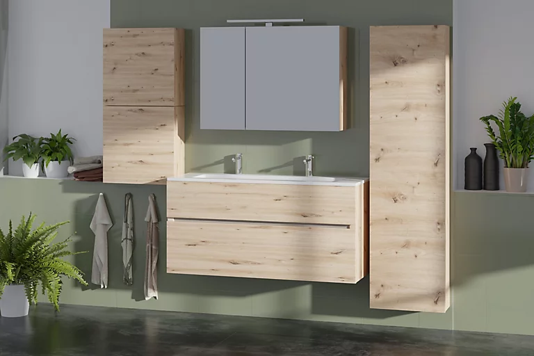 Meuble sous vasque chêne artisan 2 tiroirs Calao 120 cm